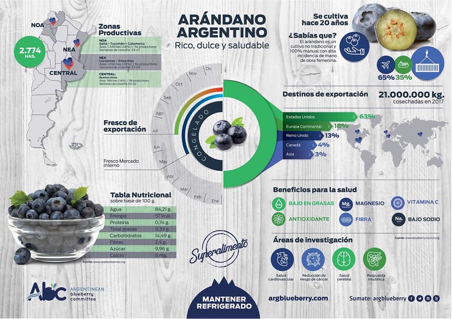 Desde ABC definen al arándano como una “superfruta” debido a su alto contenido de antioxidantes, fibras, magnesio y vitamina C, como una fruta versátil que se ofrece como alternativa saludable al consumo de snacks, colaciones y postres para toda la familia. Además se distingue con respecto a otras producciones de la región por su sabor dulce.